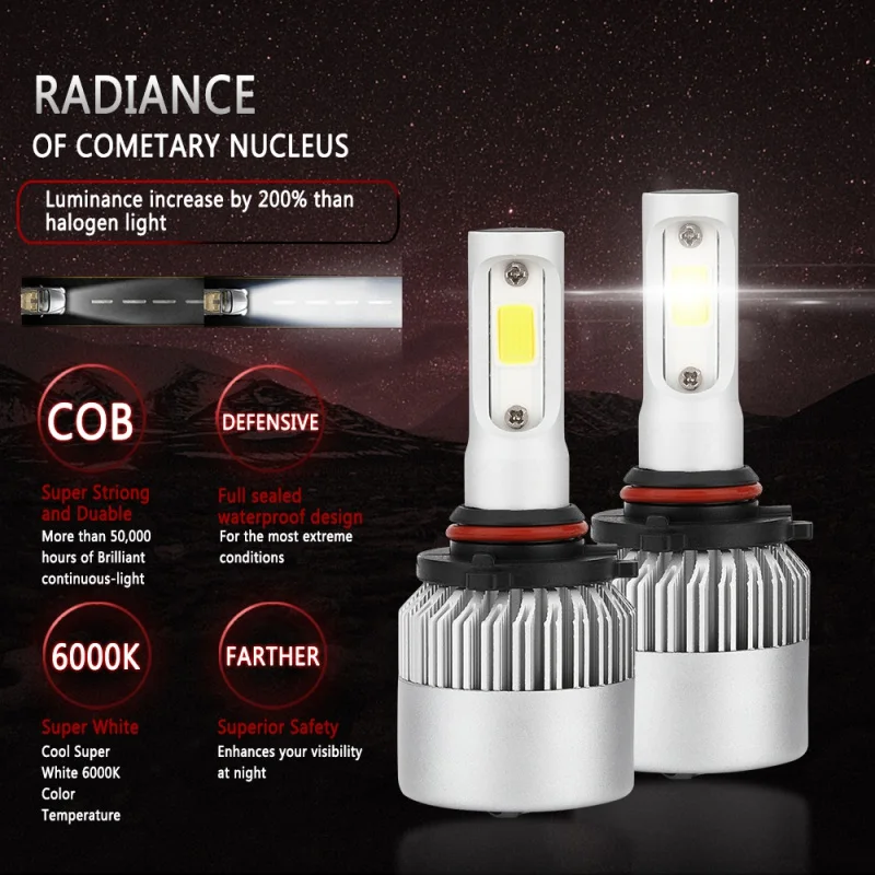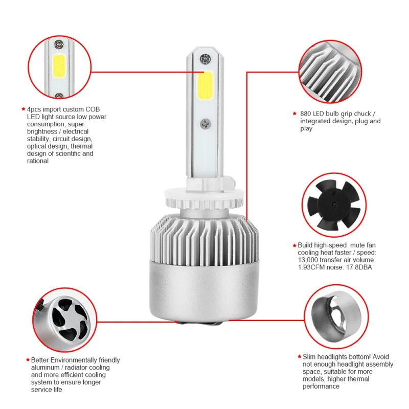 Picture of 2018 2pcs/pair H1 H3 H7 H4 H13 9005 9008 Car LED Headlight Bulbs Hi-Lo Beam 30W 3000k Auto Headlamp Fog Light Bulb DC9V~36V :