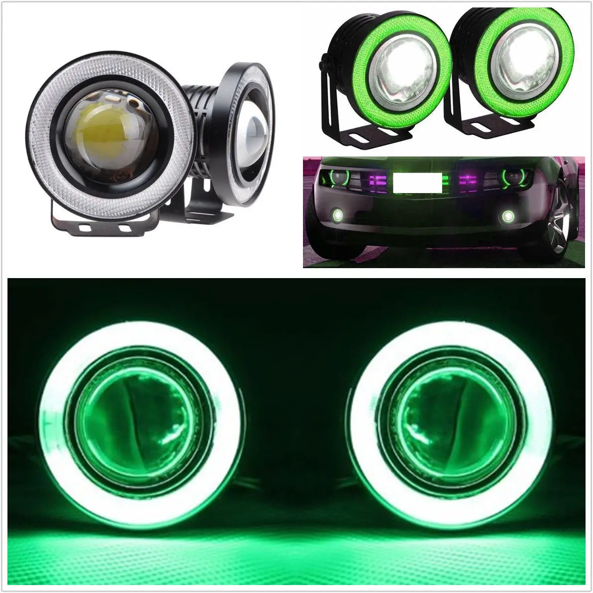 Images of 2.5" Auto Angel Eye Green COB Halo Ring Projector Lens LED DRL Driving Fog Light :